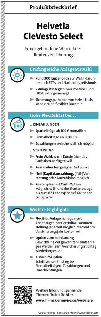 Auch zur Reduzierung von Erbschaftssteuern sind Fondspolicen einsetzbar. Vor allem Ruhestandsplaner müssen den möglichen Todesfall und eine steueroptimierte Vermögensübertragung im Blick haben. Helvetia bietet eine spezielle optionale Klausel im Vertrag an, die die Verrentung der Todesfallleistung festlegt. Für Erben können sich so die Steuerverpflichtungen erheblich reduzieren.