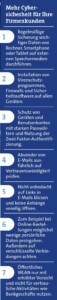 Thema Phishing“, unterstreicht Hanssen. Dieser Rundum-Ansatz für Cybersicherheit von SIGNAL IDUNA wird durch den Werkzeugkasten für Cybersicherheit und die Gefahrenwarnungen für Unternehmen erweitert.