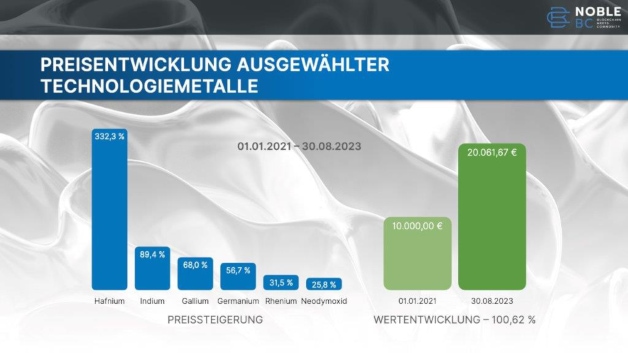Im Angebot sind die Technologiemetalle Germanium, Hafnium, Indium, Gallium und Rhenium sowie die Seltenen Erden Dysprosiumoxid, Neodymoxid, Terbiumoxid, Scandiumoxid und Gadoliniumoxid, die vor allem in der Energiewende eine tragende Rolle spielen werden. Ein Direktinvestment ist ab einer Einmaleinlage von 10.000 Euro möglich, alternativ sind ratierliche Zahlungen ab 50 Euro monatlich im Angebot.