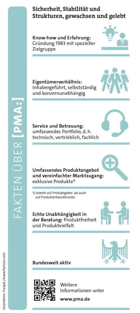 Dr. Bernward Maasjost: Im Jahr 1983 ist [pma:] mit der Spezialisierung auf Ärzte, Heilwesen und Lehrer gestartet. Seitdem sind wir kontinuierlich an und mit dem Thema gewachsen. Wir leben und lieben Dienstleistung. Menschen haben unterschiedliche Bedürfnisse und wollen dementsprechend individuell beraten und betreut werden. Dieser Herausforderung stellen wir uns gern – gestern wie heute. Dabei haben wir drei Dinge immer im Blick: beste Produkte, beste Lösungen und besten Service. Das bedeutet, neben langjähriger Erfahrung, die passenden vertrieblichen Strukturen.