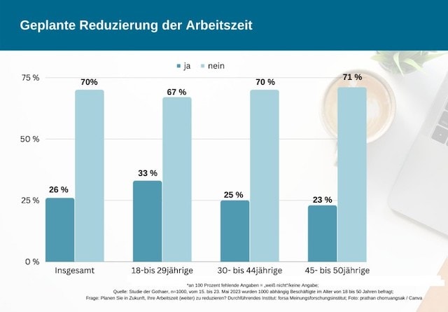 Jeder dritte abhängig Beschäftigte zwischen 18 und 50 Jahren in Deutschland hat schon mal seine Arbeitszeit reduziert. Deutlich mehr Frauen (43 Prozent) als Männer (21 Prozent) gingen diesen Schritt. Ein Viertel aller Beschäftigten plant derweil, ihre Arbeitszeit zu verringern – vor allem jüngere im Alter zwischen 18 und 29 Jahren.