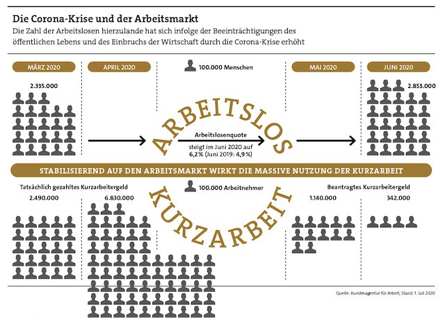 Das Gröbste soll aber noch kommen. Laut einer Umfrage des Ifo-Instituts vom Juni 2020 sieht ein gutes Fünftel der deutschen Unternehmen das eigene Überleben durch die Corona-Krise gefährdet. „In den kommenden Monaten könnte sich eine Insolvenzwelle anbahnen“, warnt daher Ifo-Forscher Stefan Sauer.