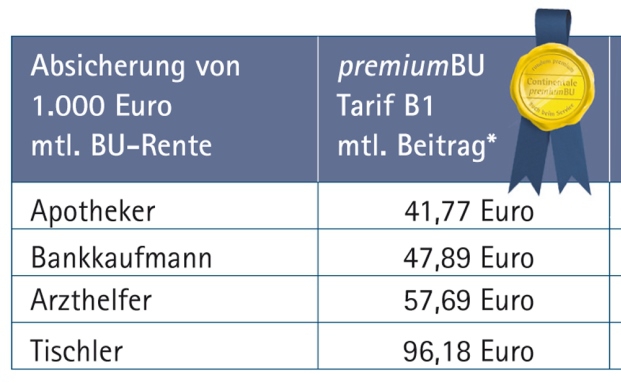 Die Continentale hat eine neue Berufsunfähigkeitsversicherung (BU) gestartet. Die „premiumBU“ sichert dabei nicht nur das BU-Risiko ab, mit dem Pflege-Paket lässt sich auch zum Beispiel eine lebenslange Pflege-Rente – auch bei Demenz – absichern.