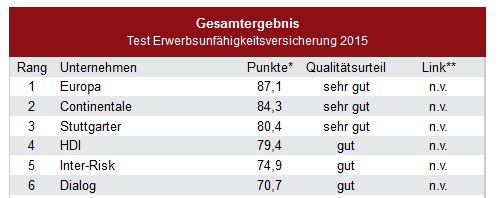 Der erste Platz ging an die Europa Versicherung. Auf Platz zwei und drei der Untersuchung liegen Continentale und Stuttgarter.