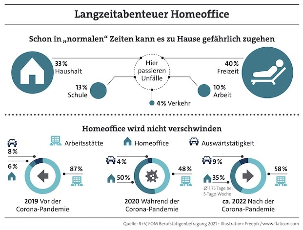 Hummel hält es daher für möglich, dass die Nachfrage nach einer privaten Unfallversicherung tendenziell steigen dürfte, „da die Unsicherheit der Betroffenen zunimmt und sich eine Abgrenzung – berufliche oder private Tätigkeit – schwierig gestaltet“. Mit einer privaten Unfallversicherung seien Arbeitnehmer im Homeoffice „in jedem Fall bestmöglich abgesichert“.
