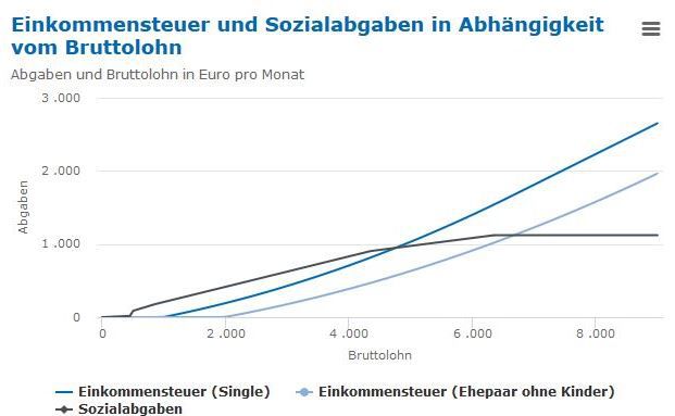 Die Belastung der Bundesbürger durch Steuern und Sozialabgaben sei generell hoch, konstatieren die Ökonomen des Instituts der deutschen Wirtschaft Köln (IW): Bei einem Bruttoeinkommen von knapp 2.000 Euro zahlen Alleinstehende bereits gut 46 Prozent Steuern und Sozialabgaben, wenn die Mehrwertsteuer berücksichtigt wird, so das Ergebnis einer aktuellen IW-Studie. Auch Ehepaare und Familien geben demnach fast die Hälfte ihres Einkommens an den Staat ab.