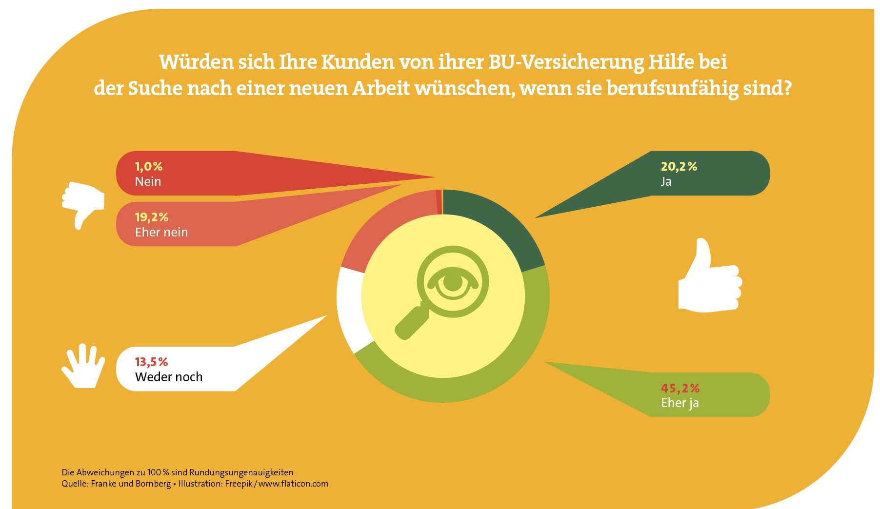 In die ähnliche Kerbe haut übrigens auch die ebenfalls enthaltene Gesundheitsplattform Coach:N. Sie bietet über 3.000 digitale Kurse darüber, wie sich Menschen gesund ernähren, bewegen und überhaupt verhalten können. Auch hier lautet die Rechnung für die Nürnberger: Sie steckt im Vorfeld Geld in solche Angebote, um später weniger Berufsunfähige zu haben. Eine Ansicht, die Makler übrigens mittragen, wie eine Umfrage der Rating-Agentur Franke und Bornberg zeigt. Darin geht es weniger um saubere Geldanlagen als vielmehr um das S in ESG, das Soziale. Einige Ergebnisse der Umfrage finden Sie in den Grafiken.