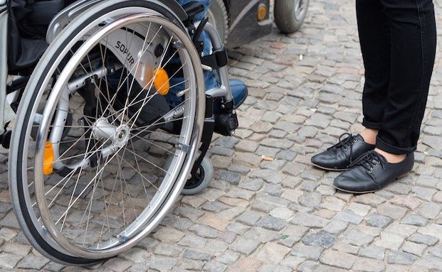 Ein Rollstuhlfahrer neben einem Fußgänger: Berufsunfähigkeitspolicen sind wichtig – aber wie gut kennen Sie sich aus?