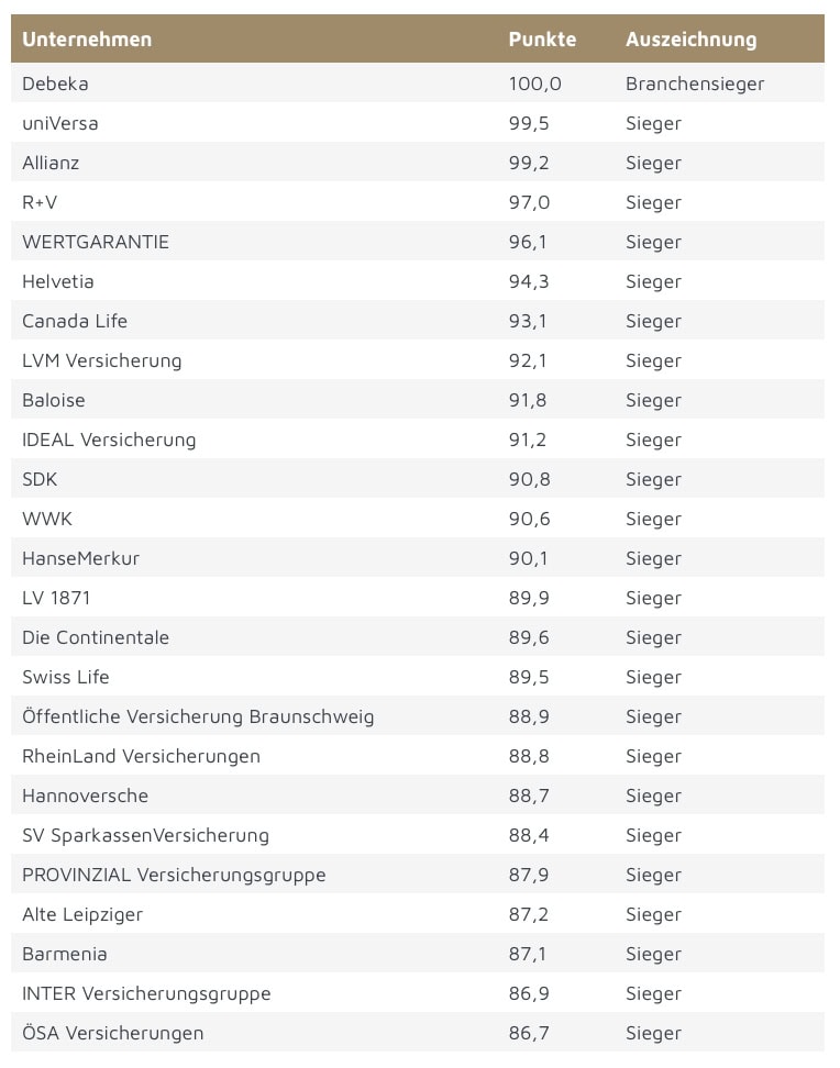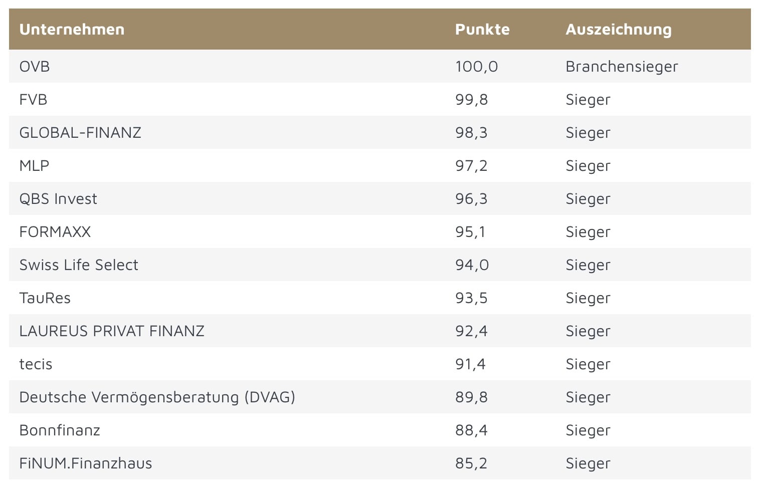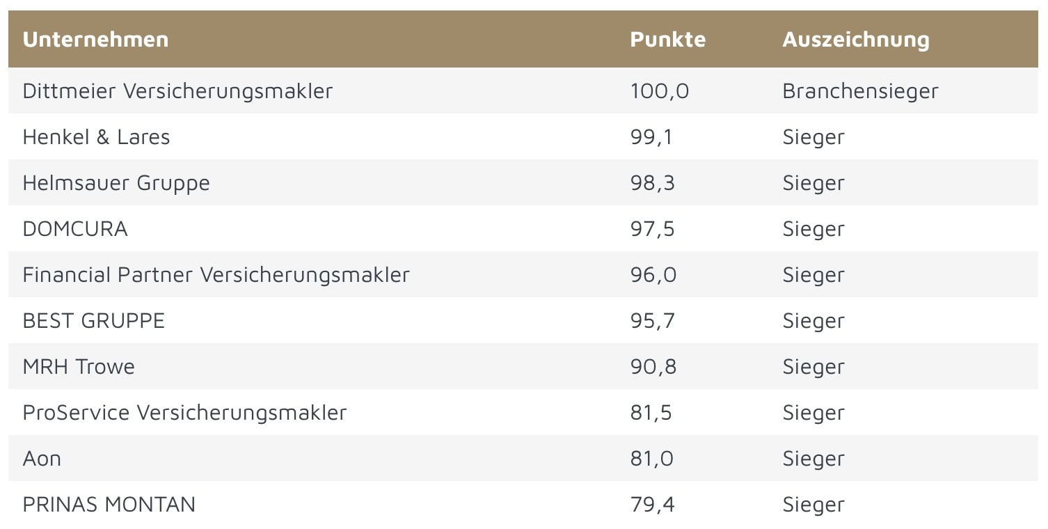 Für die Versicherungsbranche untersuchten die Analysten folgende Kategorien: Versicherer, Versicherungsmakler, Versicherungsvertreter, Spezialversicherer, Finanz- & Anlageberater sowie Digitale Finanz- und Versicherungsexperten.