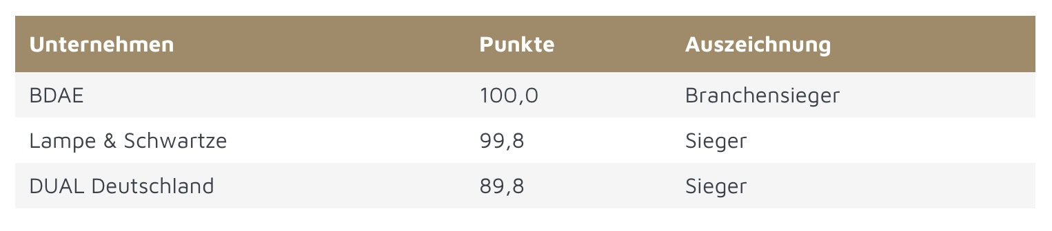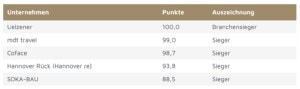 Die Ergebnisse bei Tonalität und Reichweite gaben Punkte. Maximal 100 konnte ein Unternehmen erreichen. Der jeweilige Branchenbeste setzte mit 100 Punkten die Benchmark für alle anderen untersuchten Unternehmen seiner Branche. Unternehmen, die hier einen überdurchschnittlichen Gesamtpunktwert erreichen, erhielten die Auszeichnung „Deutschlands Beste 2025“.