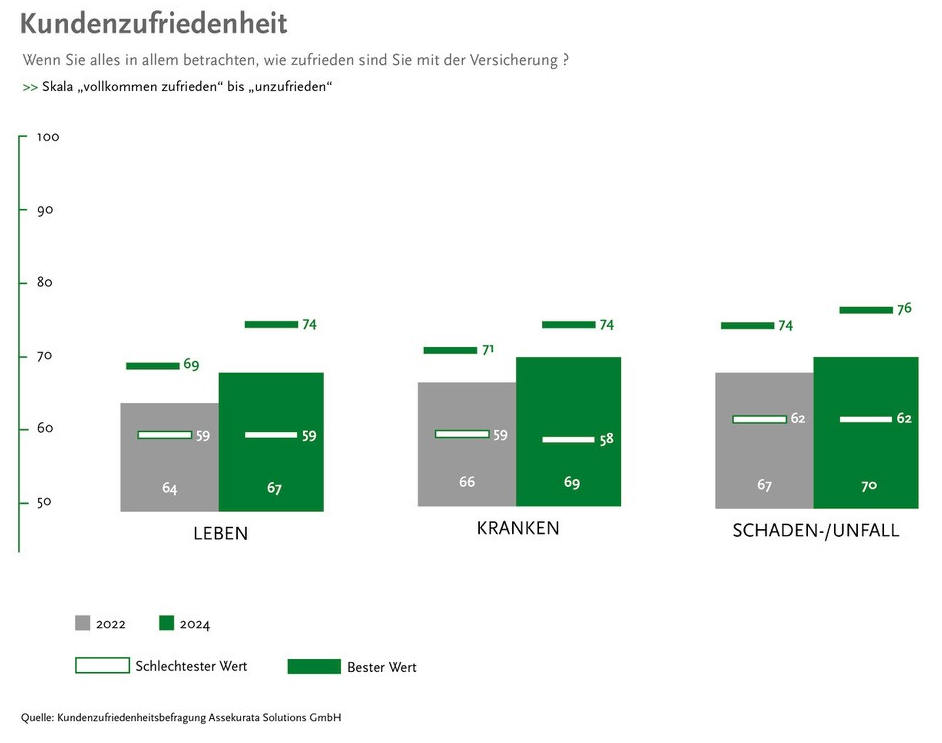 Die Kundenzufriedenheit in der Versicherungsbranche steigt. Das stellte das Rating-Haus Assekurata fest, nachdem es zum dritten Mal in Folge die Meinungen von Versicherungskunden einholte.