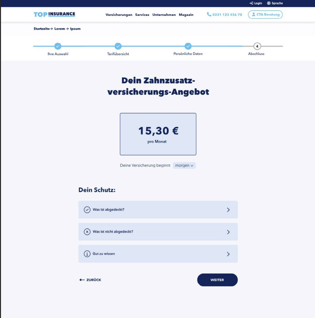 Menschen schätzen Risiken als relevanter ein, wenn sie medial präsent sind oder ihnen persönlich bekannt vorkommen – denn manchmal werden Probleme erst richtig wahrgenommen, wenn sie konkret und faktenbasiert angesprochen werden (zum Beispiel: Parodontose kann eine Gefahr für die Zähne sein). Digitale Versicherungsangebote können dies nutzen, indem sie besonders häufig gesuchte Risiken oder Leistungen prominent inszenieren – etwa durch gezielte Platzierung oder Storytelling.