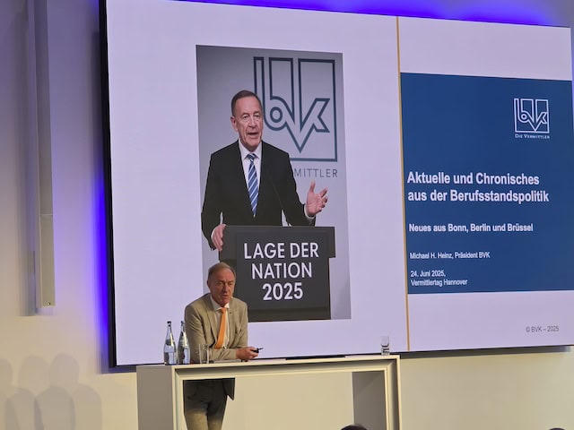 Den Eröffnungsvortrag hielt Michael H. Heinz, Präsident des Bundesverbands Deutscher Versicherungskaufleute (BVK), in seiner gewohnt humorvollen und klaren Art. Er warf einen Blick auf die Branche und auf künftige Herausforderungen.