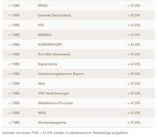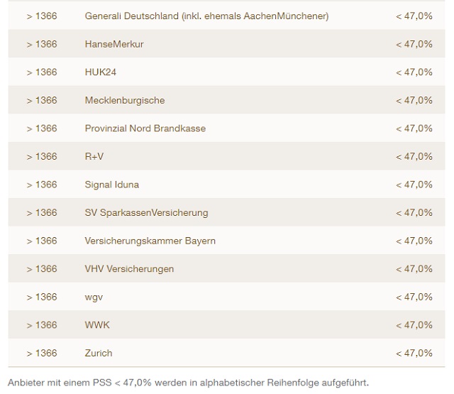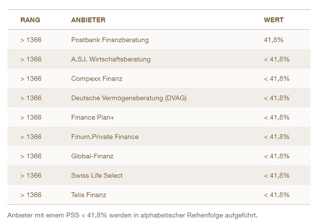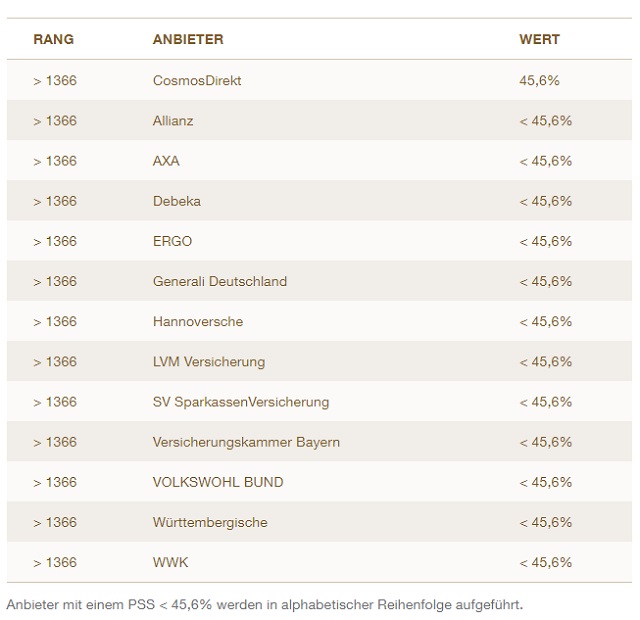 Der PSS-Wert (Price Structuring Score/Preis-Begeisterungswert) in den nachfolgenden Tabellen weist den prozentualen Anteil an Befragten aus, die laut Servicevalue von der Preisgestaltung des Unternehmens begeistert sind.