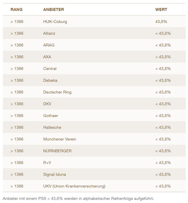 Der Preis-Begeisterungswert für Private Krankenversicherer liegt bei 34,4 Prozent.