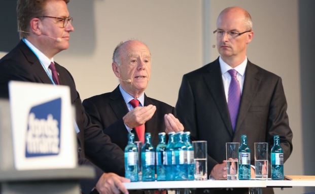 Der ehemalige Arbeitsminister Walter Riester (Mitte) diskutierte auf der Hauptstadtmesse von Fonds Finanz mit Martin Gräfer, Vorstandsmitglied „Die Bayerische“ (li.), und Joachim Haid, Gründer der Initiative „Pro Riester“.