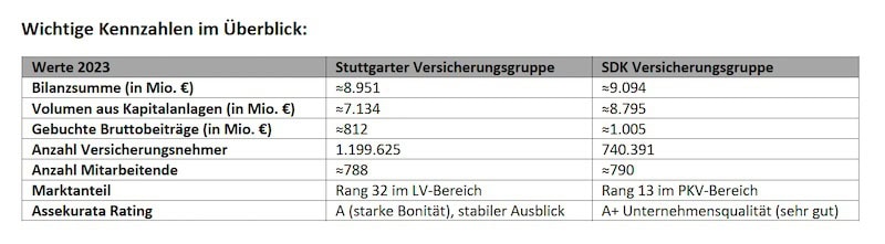 Beide Versicherer hätten dabei viele Gemeinsamkeiten, sagte Guido Bader, Chef der Stuttgarter. „Beide Häuser sind Versicherungsvereine auf Gegenseitigkeit. Beide Versicherer haben rund 800 Mitarbeitende. Die Größen der Häuser sind vergleichbar. Die Bilanzsummen lagen 2023 jeweils bei rund 9 Milliarden Euro Bilanzsumme.“
