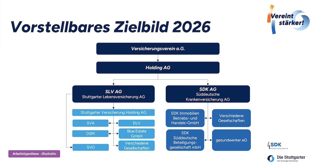 Der weitere Plan sieht vor, die Mitglieder- beziehungsweise Abgeordnetenversammlungen der SDK sowie der Stuttgarter Mitte des kommenden Jahres um die notwendigen Beschlüsse für eine schrittweise Integration der Gesellschaften in eine gemeinsame Gruppe zu bitten.