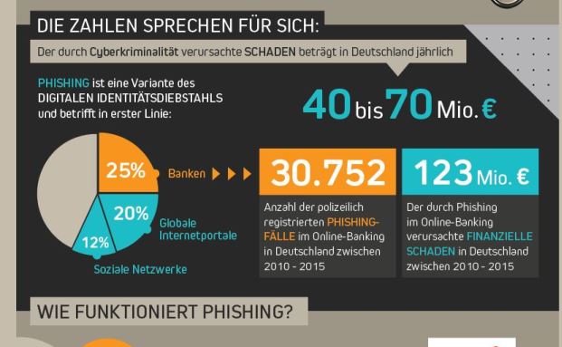 Online-Betrüger haben inzwischen viele Wege gefunden, wie sie Internetnutzer schädigen können. Zu den bekanntesten Methoden gehört das das sogenannte Phishing. Dabei gelangen die Cyber-Kriminellen etwa über gefälschte Webseiten oder Formulare an private Kundendaten. Die Infografik gibt einen umfassenden Überblick, wie Phishing funktioniert, welche Schäden entstehen können und wie man sich vor Angriffen schützen kann.