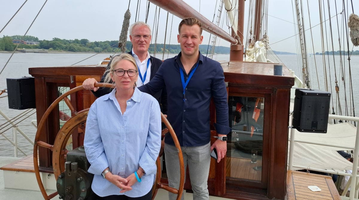 Charta-Leute an Bord der „Mare Frisium“: Manuela Proske (Partnerbetreuung), Ulrich Neumann (Vorstand), Marvin Pfanschilling (Vertrieb und Marketing) (Foto: Pfefferminzia)