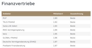 Auf der folgenden Seite finden Sie die Finanzvertriebe mit den zufriedensten Kunden.