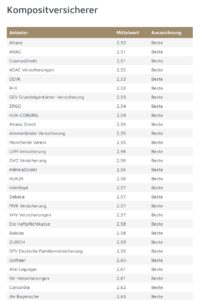 Auf der folgenden Seite finden Sie die Kompositversicherer mit den zufriedensten Kunden.