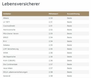 Auf der folgenden Seite finden Sie die Lebensversicherer mit den zufriedensten Kunden.