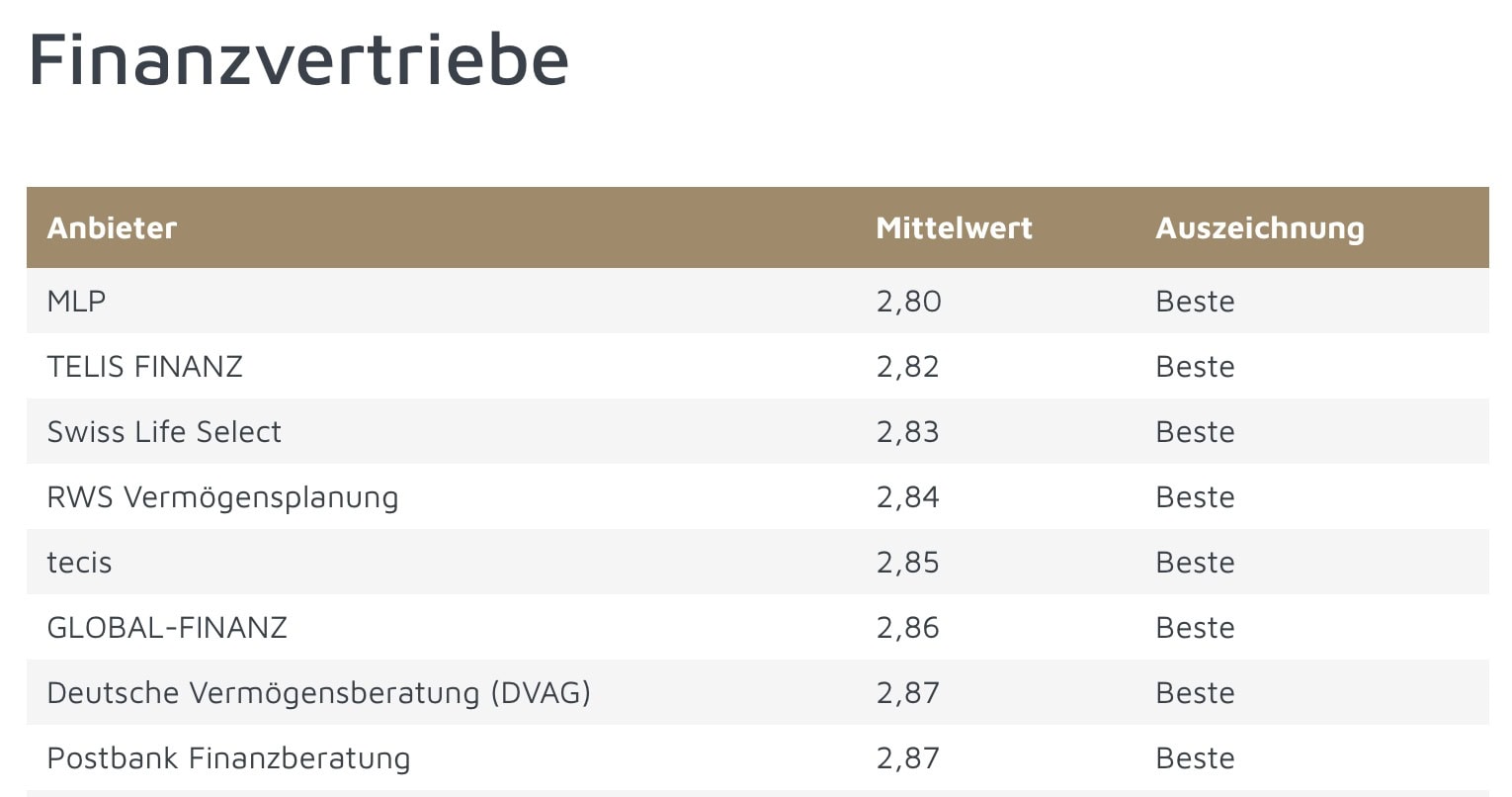 Auf der folgenden Seite finden Sie die Finanzvertriebe mit den zufriedensten Kunden.