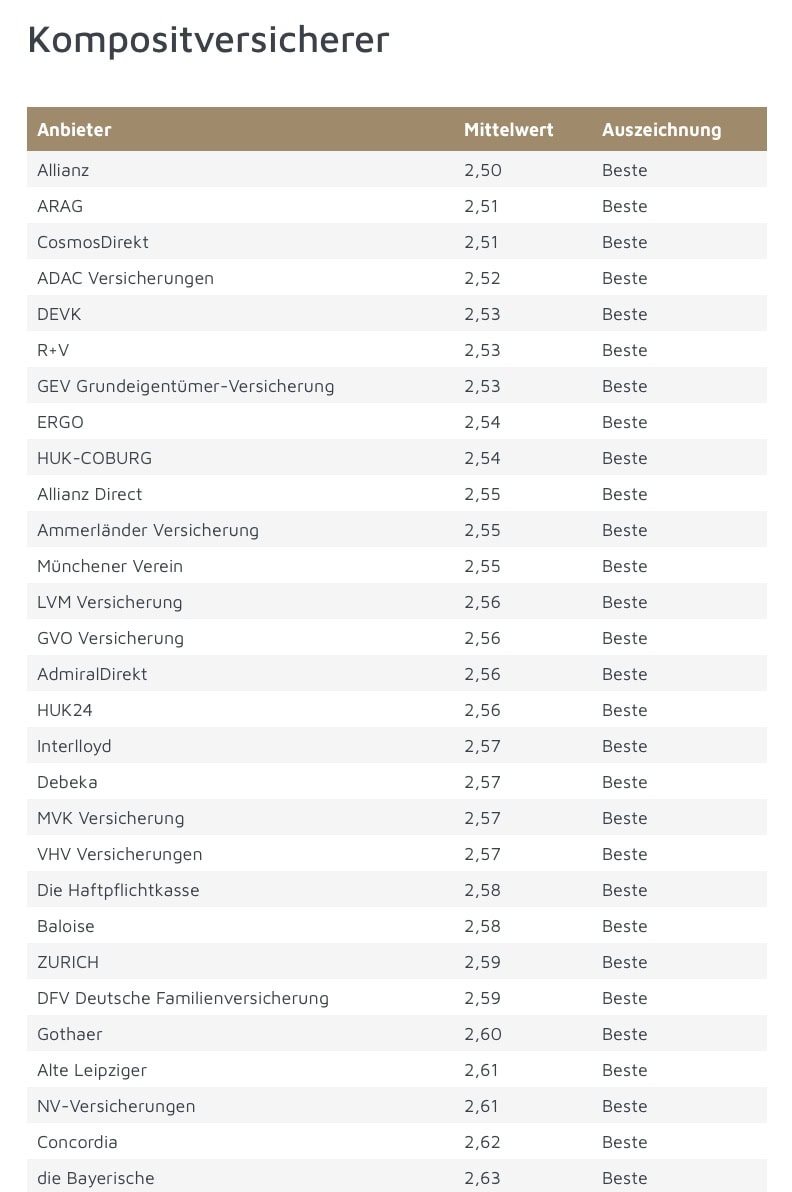 Auf der folgenden Seite finden Sie die Kompositversicherer mit den zufriedensten Kunden.