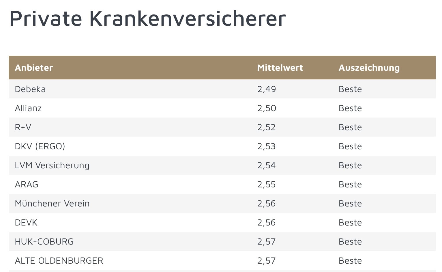 Private Krankenversicherer | Debeka | 2,49