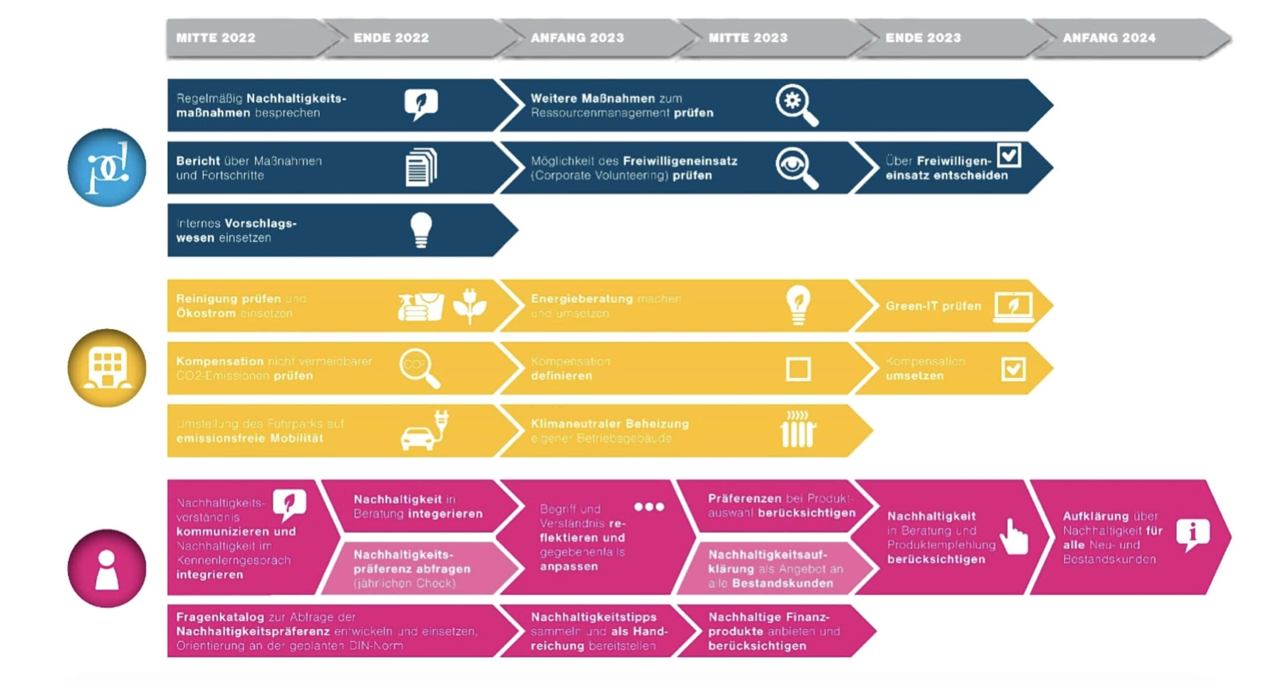 Ausgehend von der Strategie und ihren Zielen erstellen Sie den Maßnahmenfahrplan. Dieser kann so aussehen: