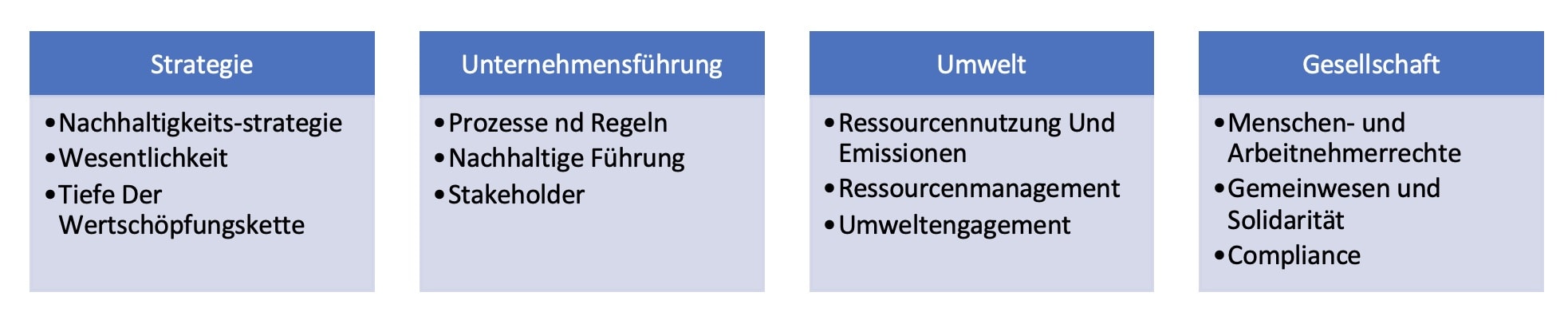 - welche Bestandteile der eigenen Wertschöpfung auf Nachhaltigkeits-Aspekte ausgerichtet werden,