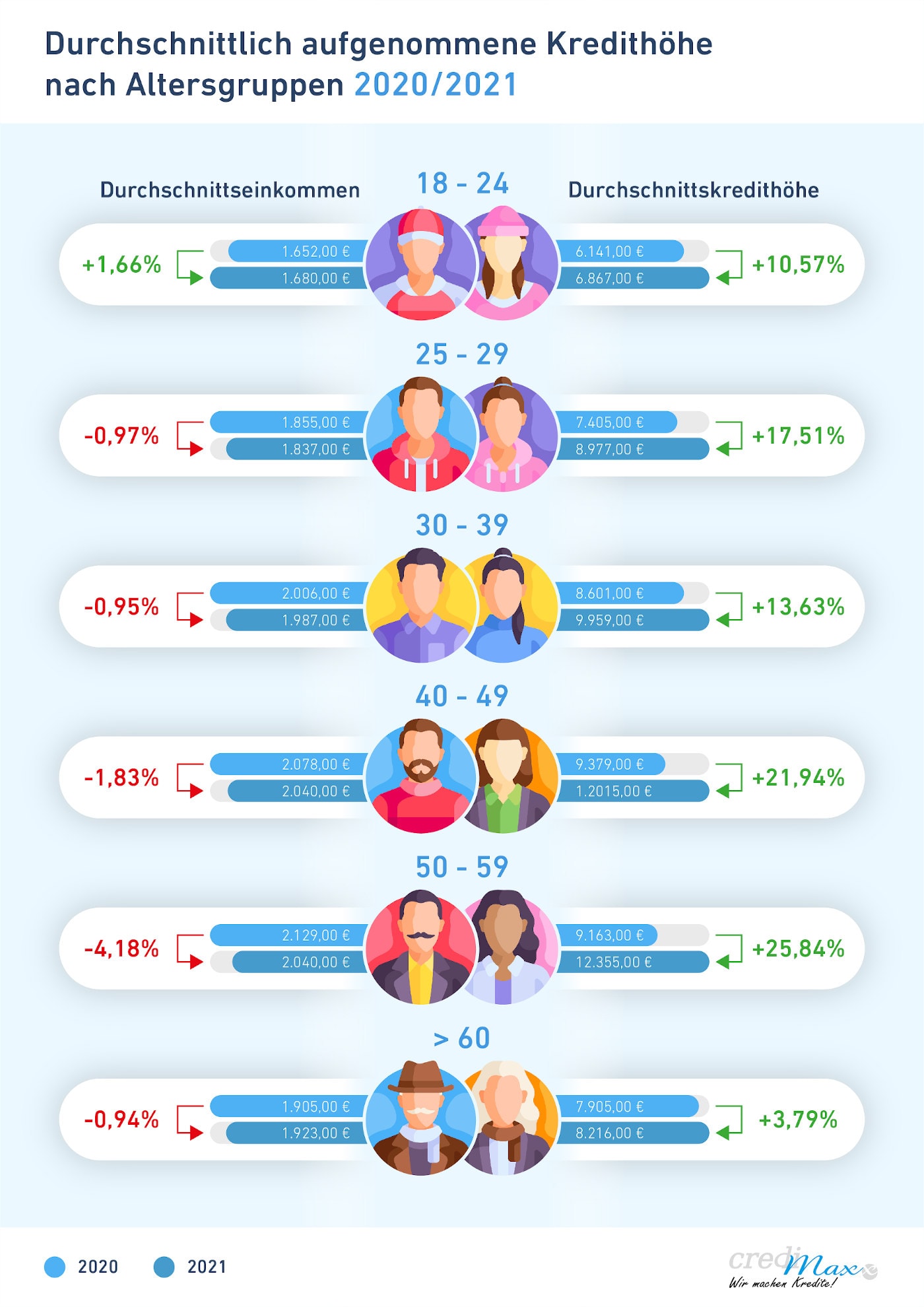 Einkommen und Kredithöhe nach Altersgruppen (Quelle: Credimaxx)