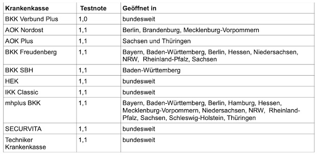 Alle Testergebnisse im Überblick stellt das Portal hier zur Verfügung. Neben eines Gesamtüberblicks biete der Test auch separate Wertungen und Vergleichsmöglichkeiten für Studierende, Selbstständige, Schwangere und Azubis.
