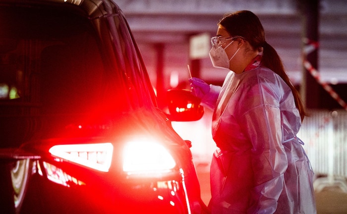 Eine Helferin testet Insassen eines Autos auf das Corona-Virus: Die PKV-Branche ist laut den Ratings weitestgehend glimpflich durch die Pandemie gekommen.