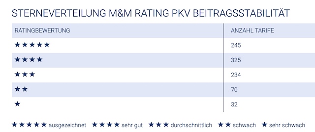 Von den untersuchten 916 Tarifkombinationen erhielten 29 Prozent die Bestnote „ausgezeichnet“ und damit fünf Sterne. Das Rating-Ergebnis und die Erläuterungen dazu, finden Sie hier.