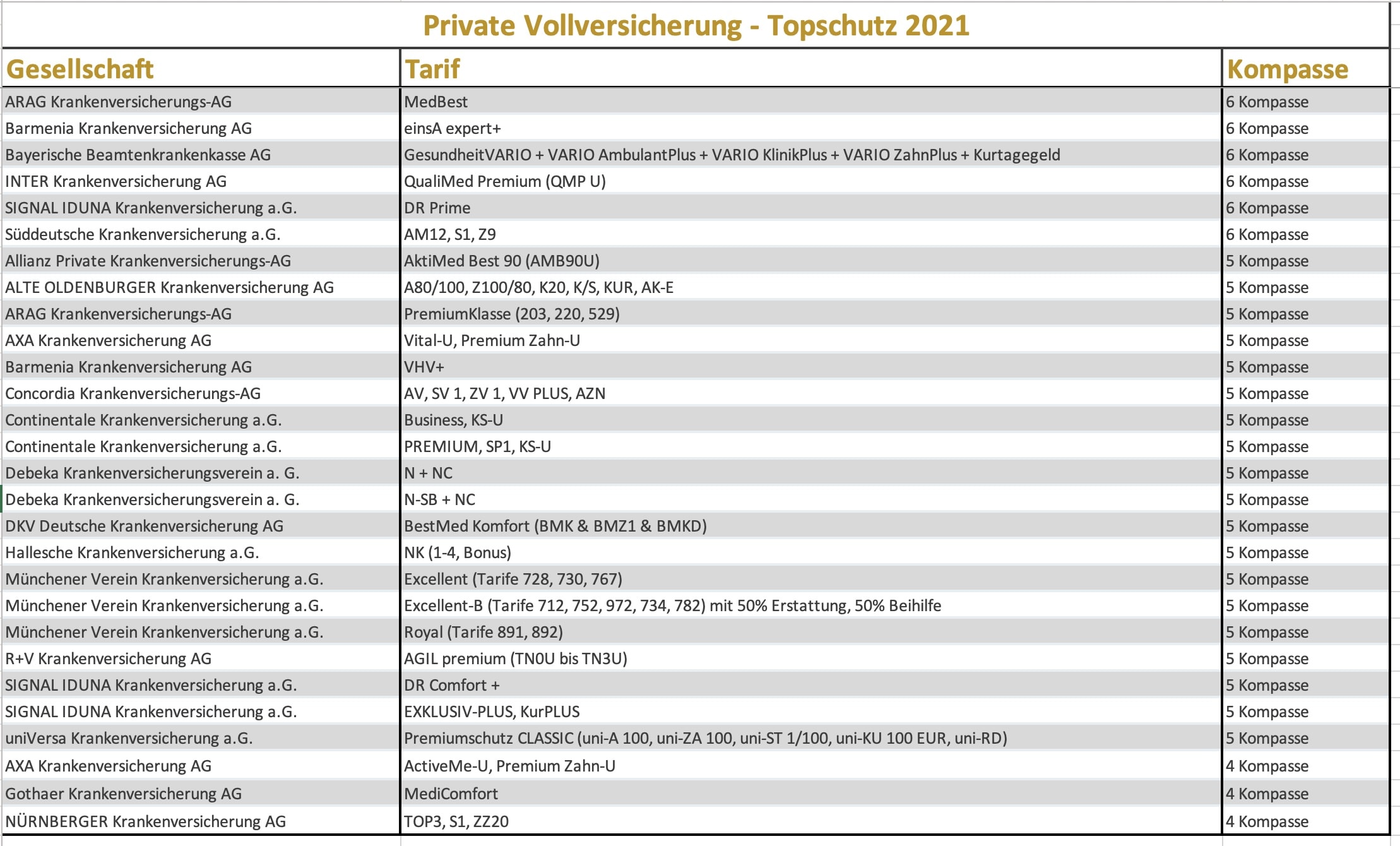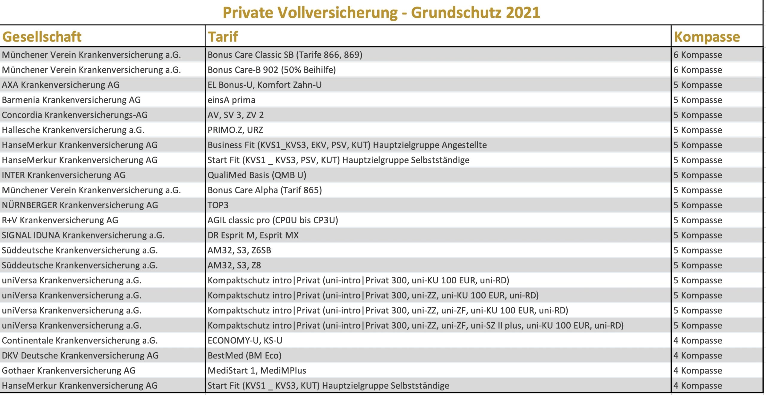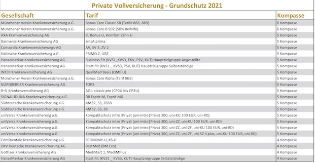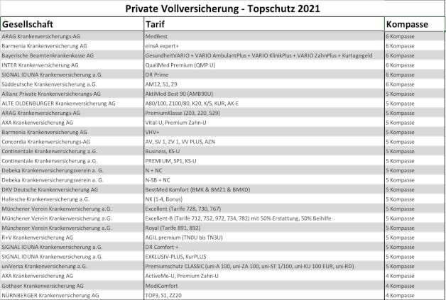 Darüber hinaus flossen zusätzliche Kriterien wie zum Beispiel ambulante Soziotherapie, Erstattungssatz für Zahnersatz ohne Heil- und Kostenplan und Schutzimpfungen (Urlaubs- und Dienstreisen) in die Bewertung ein. Daneben wurden auch Veränderungen der einzelnen Versicherungsbedingungen berücksichtigt und zahlreiche neue Tarife aufgenommen.