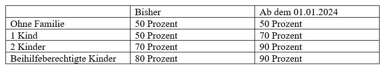 Neuer Beitrag ab 1. Januar 2024 mit 90 Prozent Anspruch auf Beihilfe: