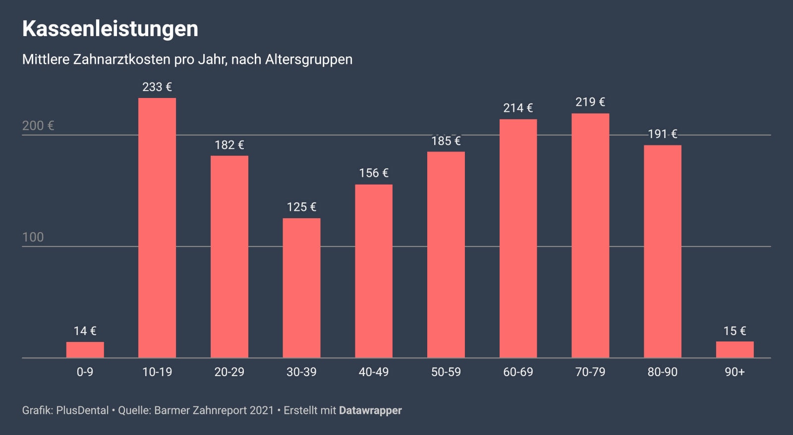 Die gesetzlichen Krankenkassen zahlen im Durchschnitt für die Zähne ihrer Versicherten bis zu einem Alter von 80 Jahren insgesamt 14.218 Euro. Das haben die Spezialisten des Berliner Tech-Unternehmens Plusdental ausgerechnet.