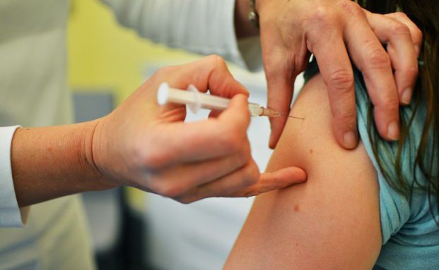 Eine Ärztin bei der Grippe-Impfung: In der Gesundheits-App der DKV können Nutzer unter anderem ihren Impfpass verwalten.