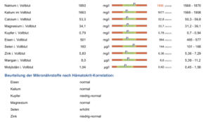 Das ist wesentlich aussagekräftiger, als die Werte lediglich im Serum zu messen. Beispiel Kalium: Dieses liegt im Körper zu 90 Prozent in den Zellen vor und lediglich zu 10 Prozent außerhalb. Wird nun nur klassisch im Blutserum gemessen und ein normaler Wert festgestellt, kann es dennoch sein, dass innerhalb der Zellen schon lange ein Mangel vorliegt. Grund: Das Gesamtsystem Blut ist für den Körper so wichtig, dass die Zellen ihre Nährstoffe bei Mangel opfern, um die Werte im Serum so lange wie möglich im optimalen Bereich halten zu können.
