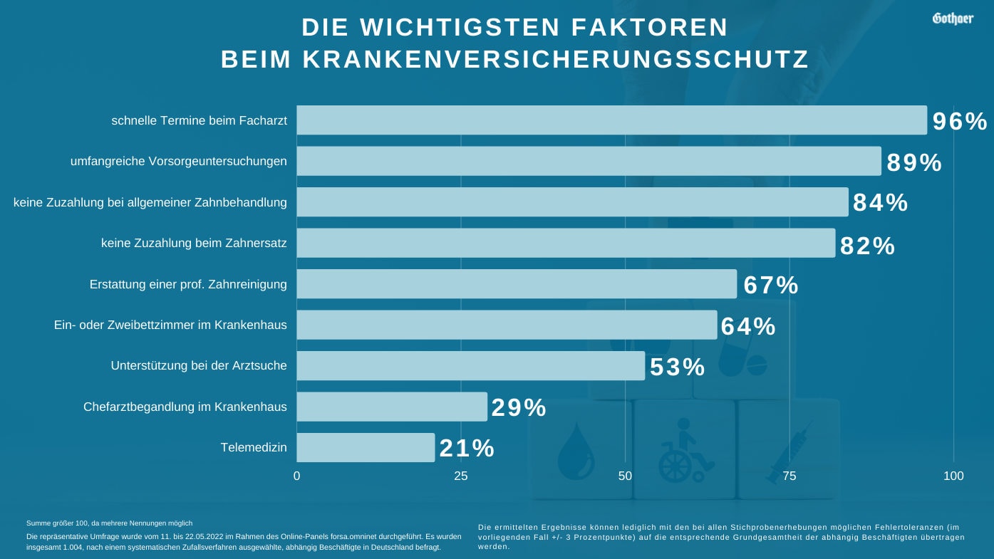 Eine Umfrage der Gothaer belegt, was den Deutschen wichtig ist: Gesundheit. Doch sie zeigt auch, was sie dafür tun, und vor allem, was Krankenversicherungen und Arbeitgeber beitragen sollen. Kleiner Vorgucker: Eine bKV ist es nicht.