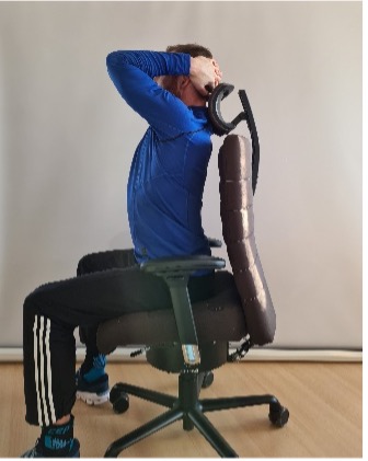 Ellenbogen nur so weit schließen, dass der Druck am Kopf nicht zu unangenehm wird