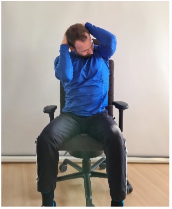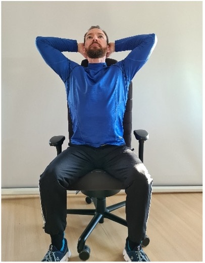 Schließe Deine Ellenbogen (die Unterarme liegen dabei in etwa in Höhe der Schläfen oder etwas darüber)