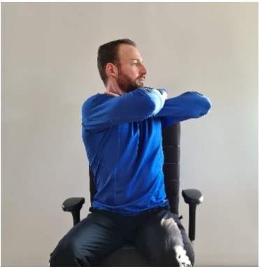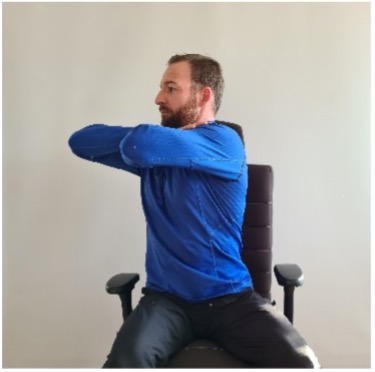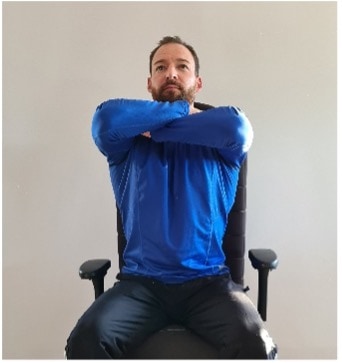 Überkreuze deine Arme auf Höhe deiner Schlüsselbeine und lege die Hände auf die Schultern