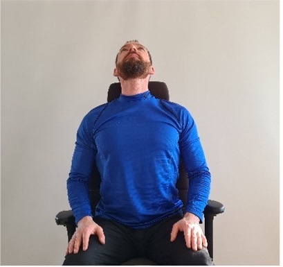 Senke Deinen Kopf langsam (Kinn Richtung Brust) ohne den Kopf dabei nach vorne zu schieben (kein Geierhals)