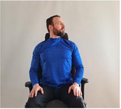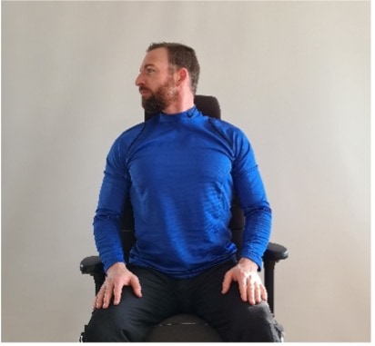 Oberkörper von ganz links nach rechts und von rechts nach links drehen (Kopf bewegt sich mit)