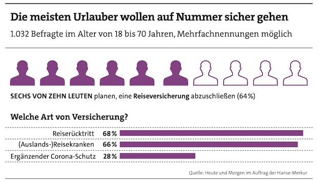 „Die Reiselust der Deutschen ist dieses Jahr mit voller Kraft zurückgekehrt“, freut sich Johannes Ganser, Vorstand Kooperations- und Reisevertrieb der Hanse-Merkur. So hätten 86 Prozent der Deutschen konkret vor, in den Urlaub zu fahren, sagt Ganser und beruft sich dabei auf eine bevölkerungsrepräsentative Online-Umfrage, die beim Marktforschungsunternehmen „Heute und Morgen“ beauftragt wurde.