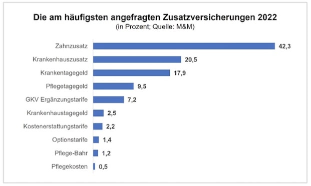Von jenen Menschen, die im vergangenen Jahr lieber darauf setzten in der GKV zu bleiben, um dort ihren Leistungsumfang durch Zusatzversicherungen zu erweitern, war die überwiegende Mehrheit an einer Zahnzusatzversicherung interessiert (42,3 Prozent). Für viele Menschen werde auch das Thema „Pflege“ immer wichtiger, heißt es. So entfielen immerhin fast 10 Prozent aller Anfragen im vergangenen Jahr auf Tarifberechnungen von Pflegetagegeldversicherungen (siehe dritte Grafik). Kaum nachgefragt wurden dagegen Pflegekostenversicherungen (0,5 Prozent). „Das liegt jedoch daran, dass sich der finanzielle Bedarf im Alter schwer vorhersagen lässt. Für Menschen bis etwa 50 Jahre empfiehlt sich daher meist noch keine Pflegezusatzversicherung“, ordnet man bei JDC dieses Ergebnis ein.