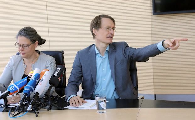 Karl Lauterbach (SPD) beantwortet am 18. Juli gemeinsam mit Nina Scheer (SPD) Fragen auf einer Pressekonferenz in Berlin zu ihren Bewerbungen um die Kandidatur für den SPD-Parteivorsitz.